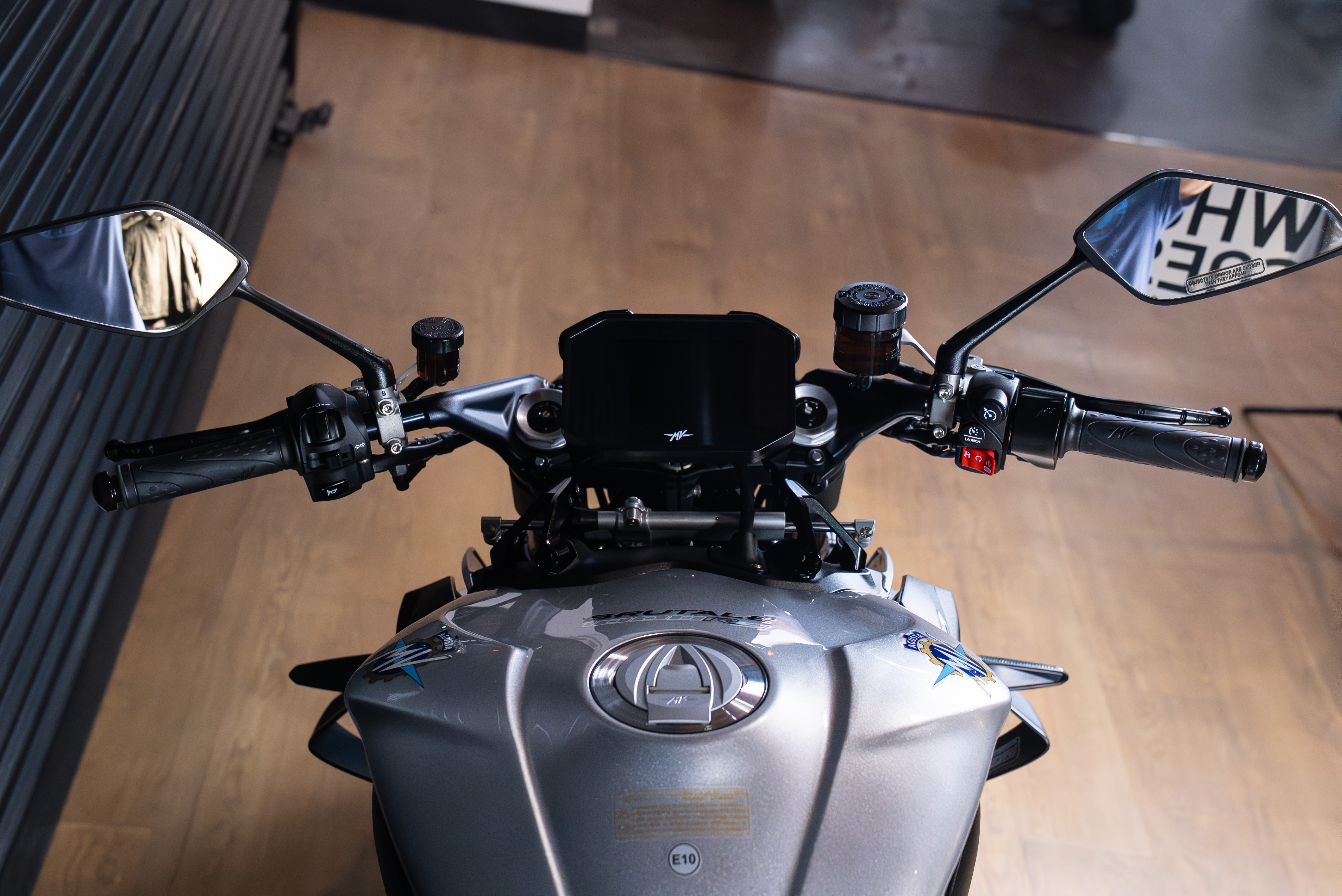 Integrated ignition - injection system MVICS 2.1 (Motor & Vehicle Integrated Control System) with eight injectors (4 lower fuel injectors by Mikuni + 4 upper fuel injectors by Magneti Marelli with increased fuel flow). Engine control unit Eldor Nemo 2.1, throttle body bore 50 mm diameters full ride by wire Mikuni, pencil-coil with ion-sensing technology, control of detonation and misfire Torque control with four maps. Traction control with 8 levels + off and wheelie control with inertial platform