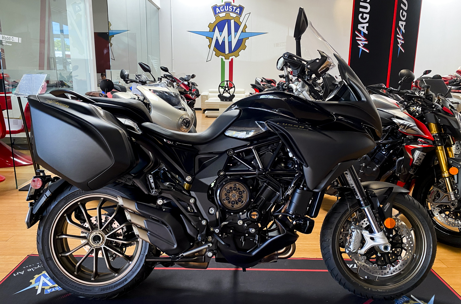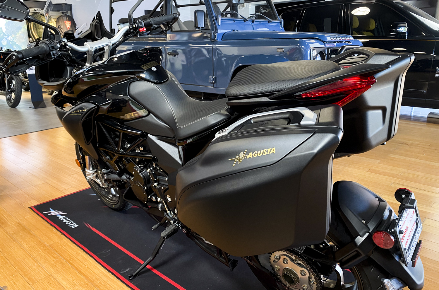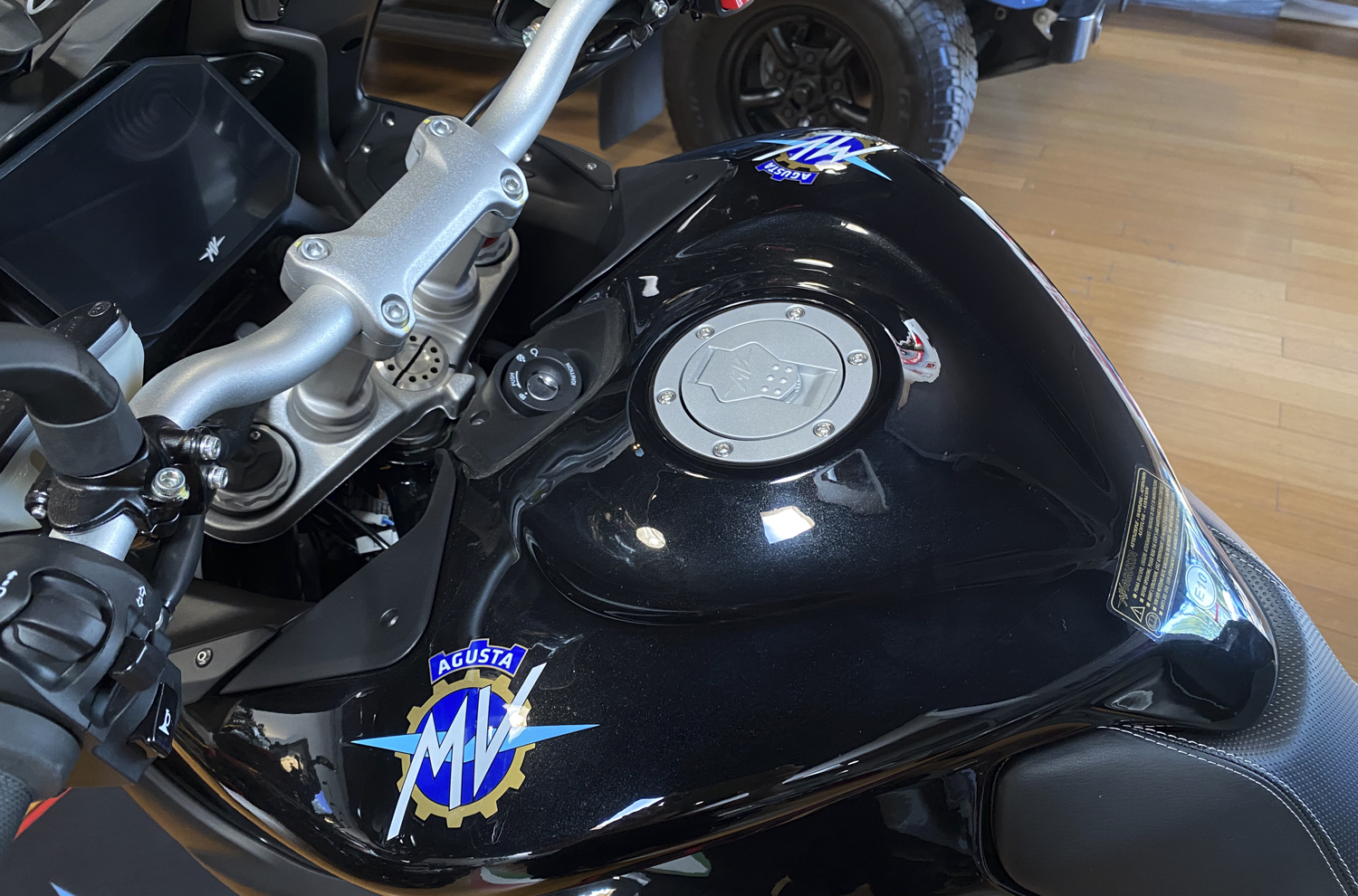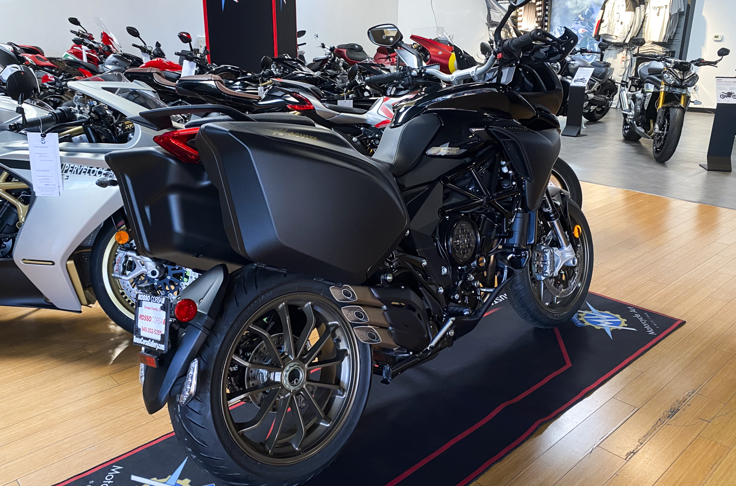 Included accessories Heated Grips - Bluetooth - Cruise control - GPS sensor - Central stand - Adjustable windshield - Bags 34 l (8.98 U.S. gal. each) - MV Ride App for navigation mirroring, app-controlled engine, rider aids setup - Mobisat anti-theft system with geolocation