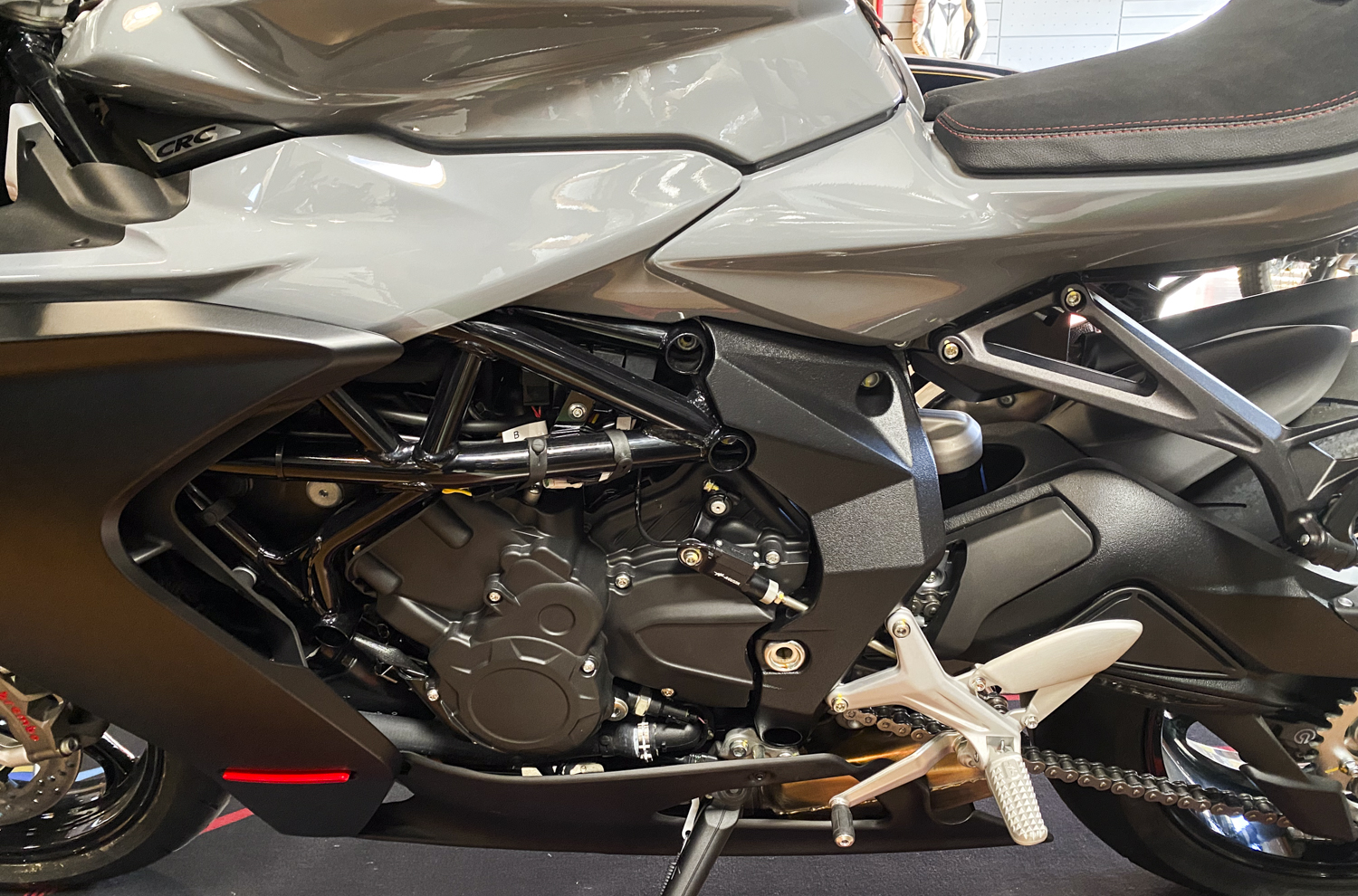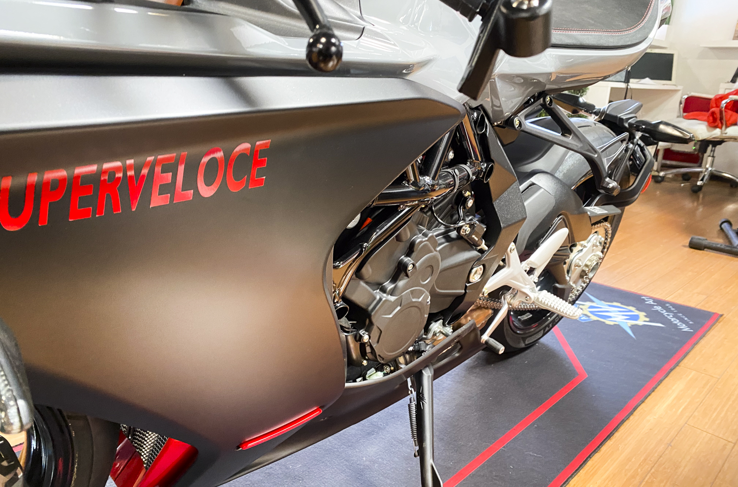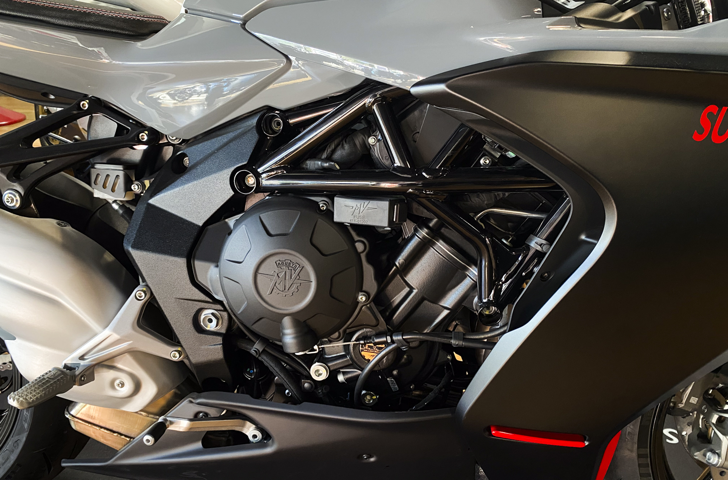 Titanium components: Intake and exhaust valves; Exclusive content: Dashboard TFT 5.5”color display - Cruise control - Launch control - FLC (Front Lift Control) - Bluetooth - GPS - MV Ride App for navigation mirroring, app-controlled engine, rider aids setup - Fuel cap (with leather strap) - Mobisat anti-theft system with geolocation