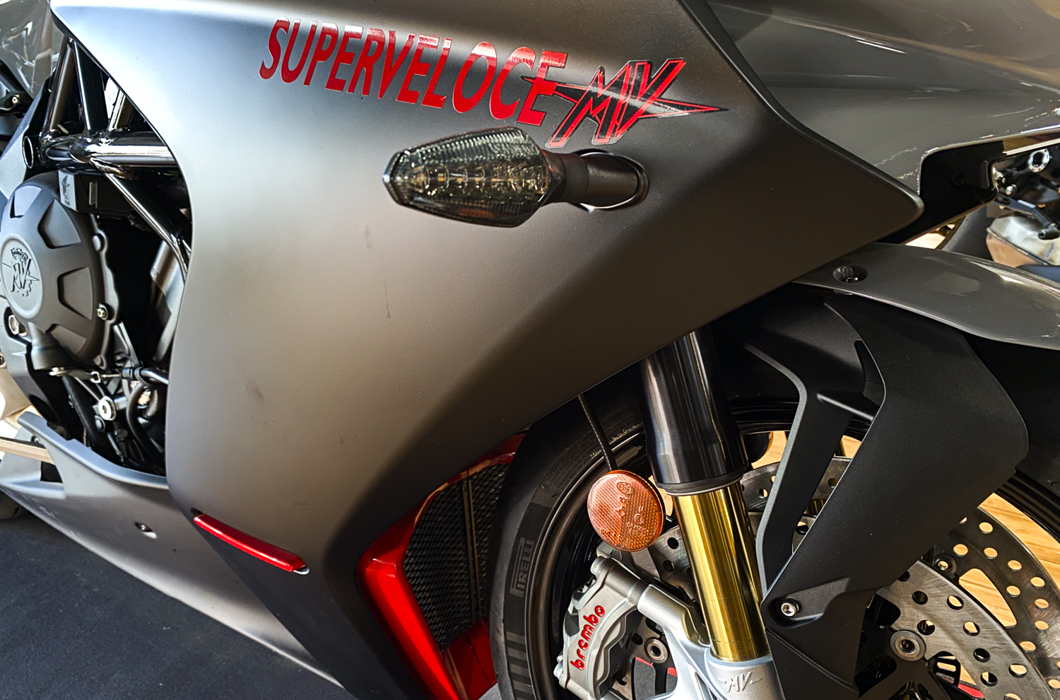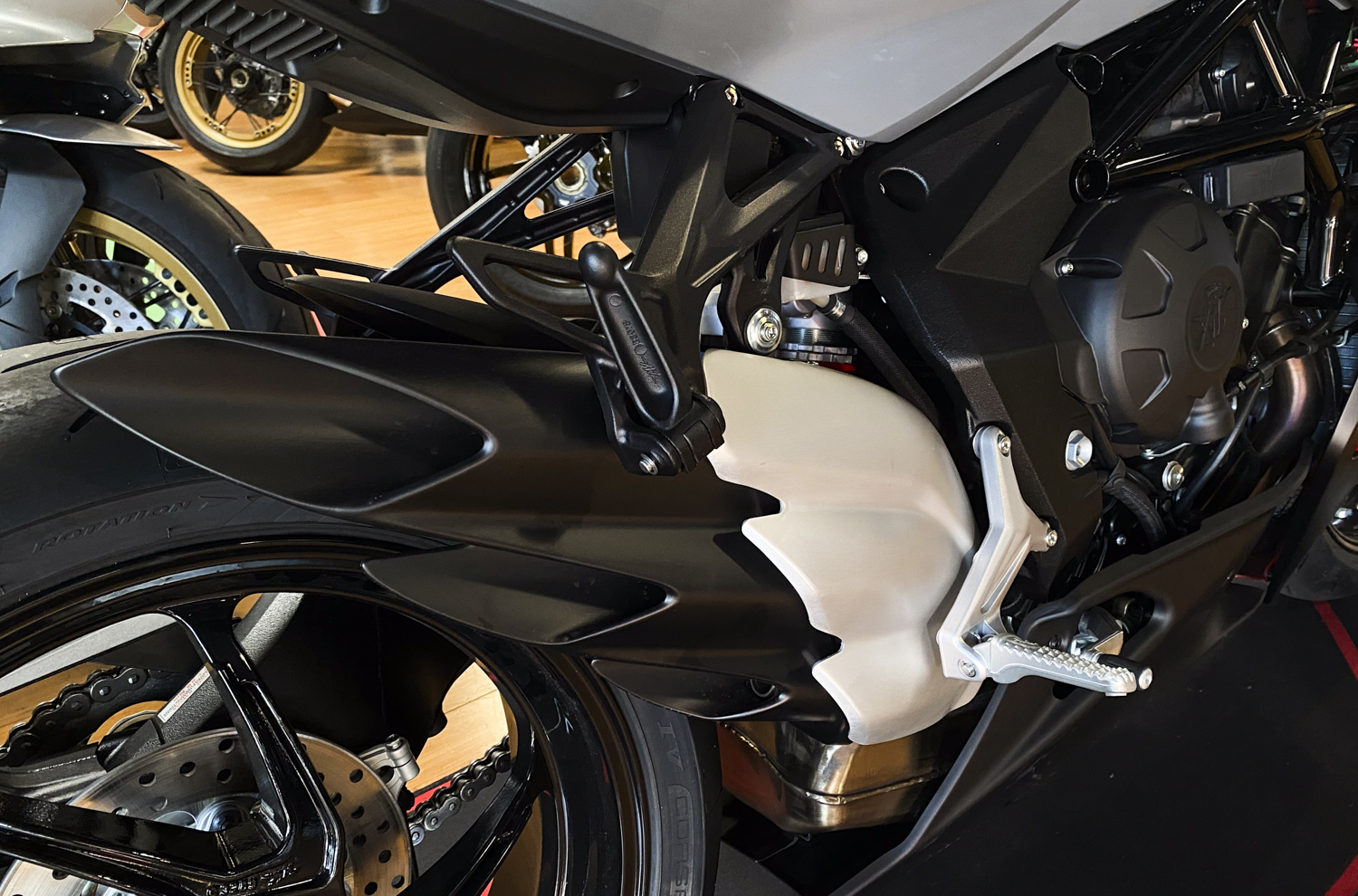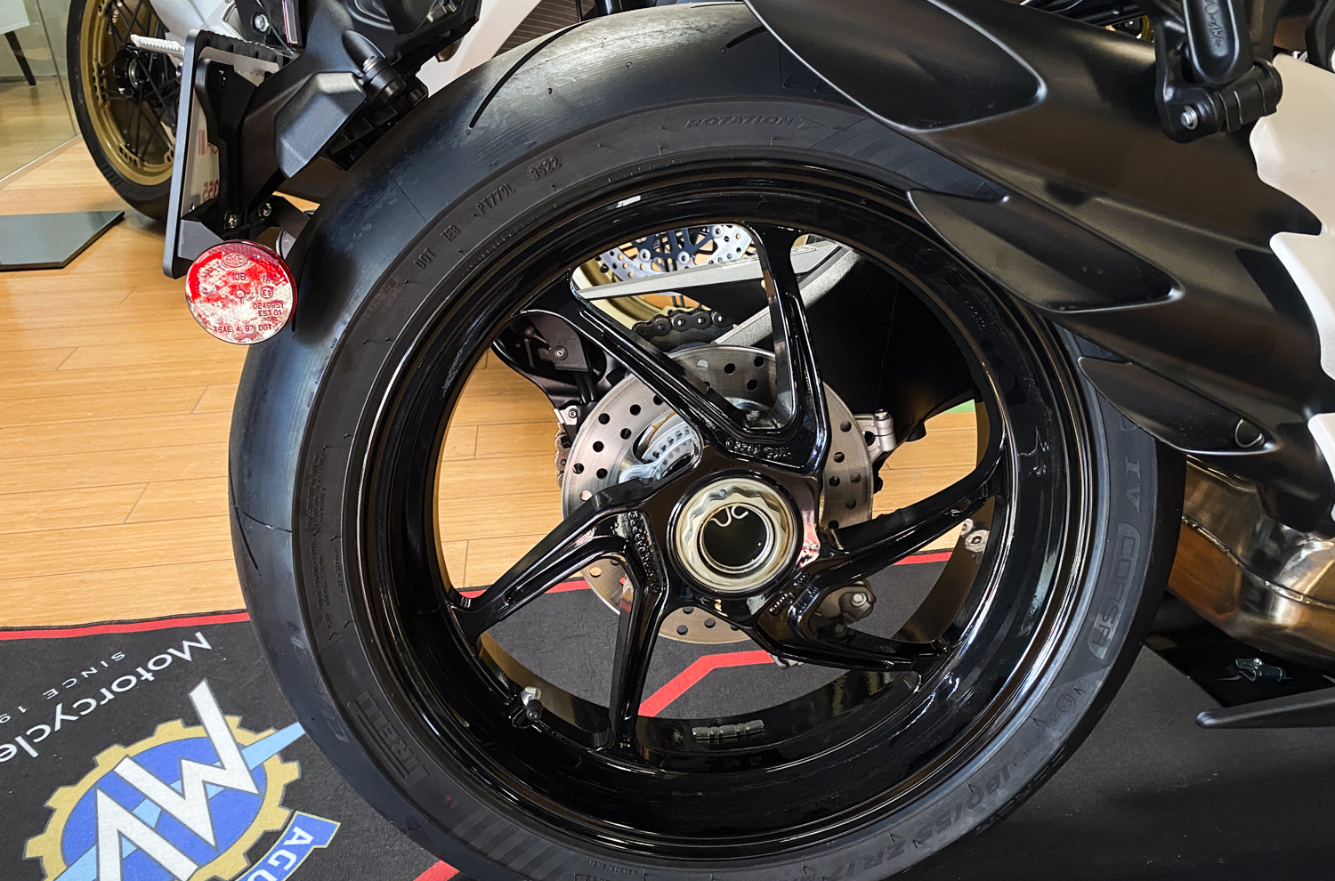 Titanium components: Intake and exhaust valves; Exclusive content: Dashboard TFT 5.5”color display - Cruise control - Launch control - FLC (Front Lift Control) - Bluetooth - GPS - MV Ride App for navigation mirroring, app-controlled engine, rider aids setup - Fuel cap (with leather strap) - Mobisat anti-theft system with geolocation