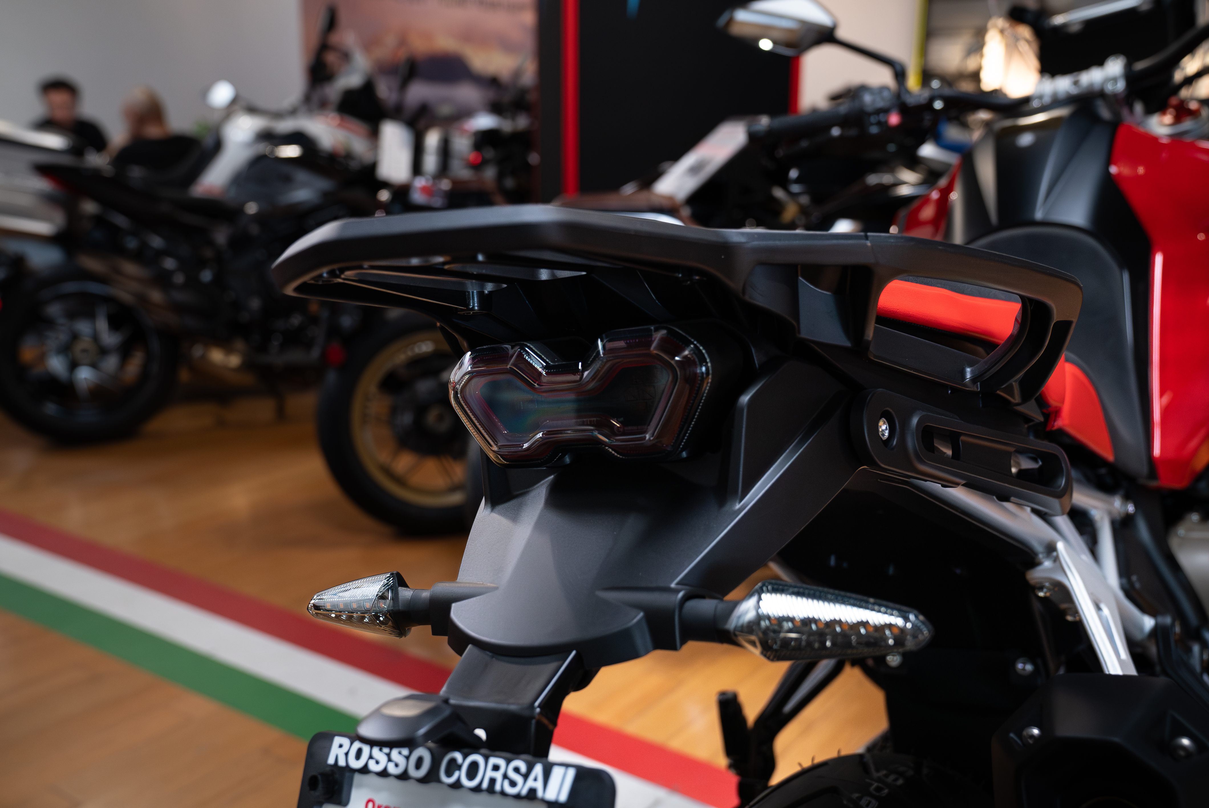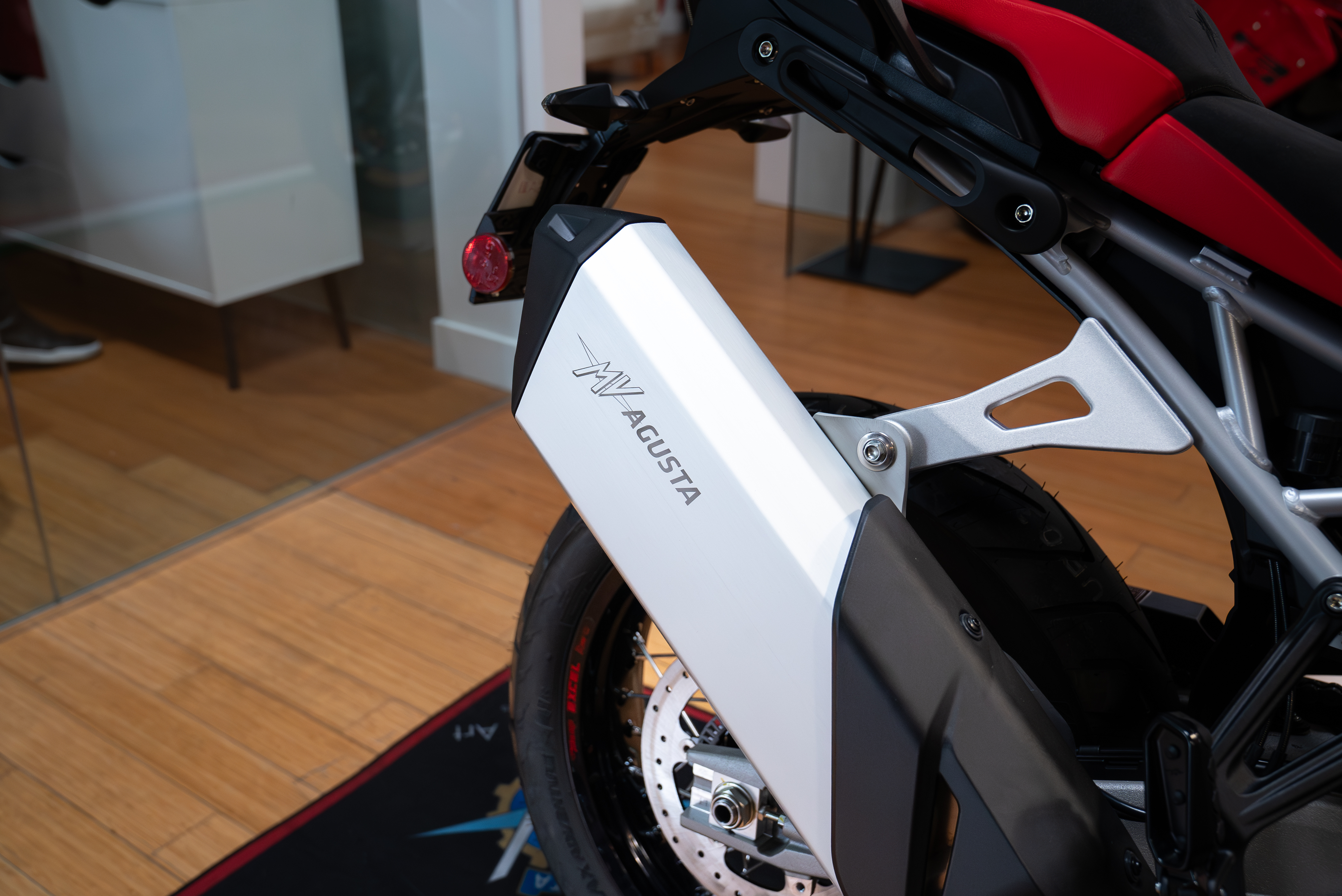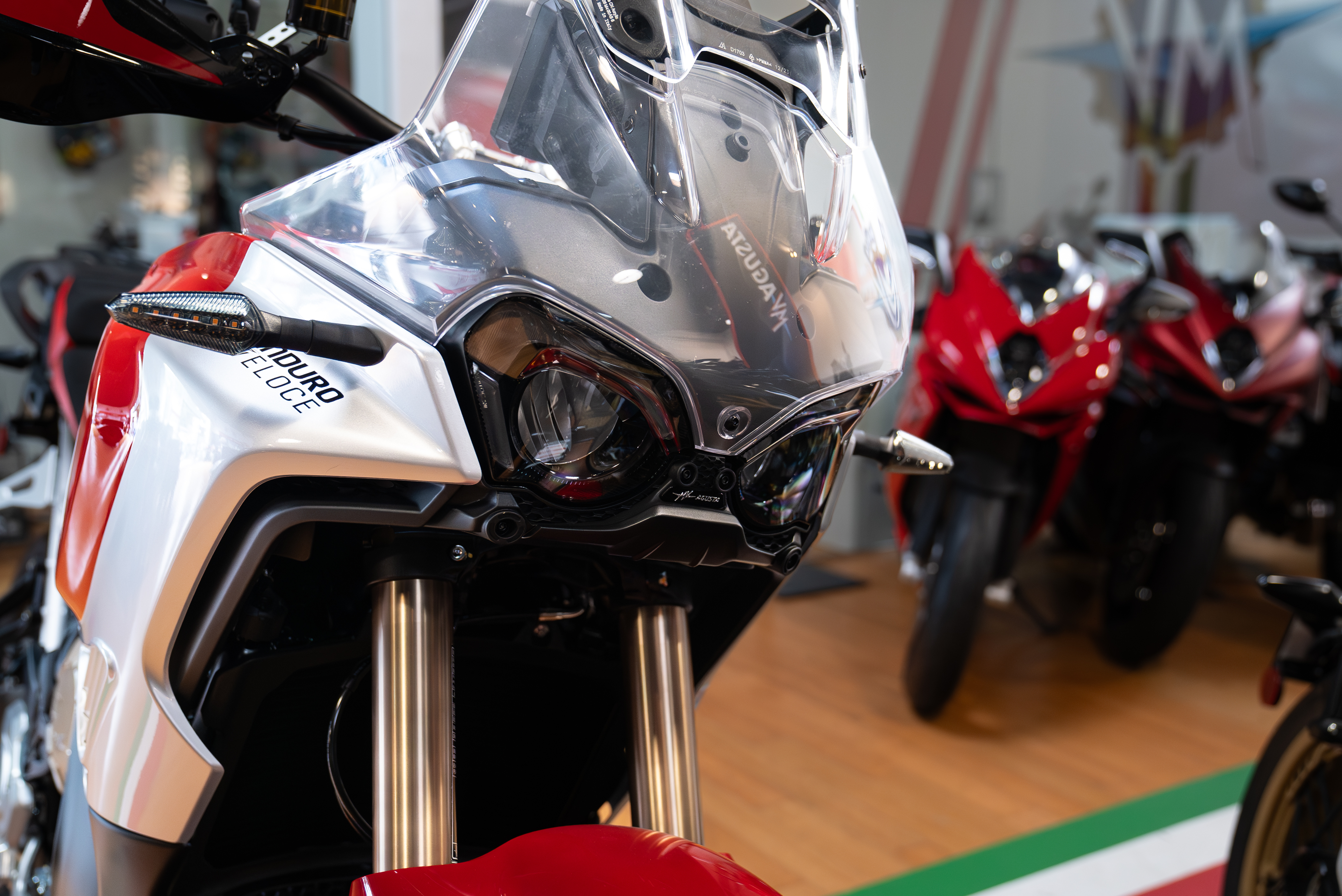 STYLE: The Enduro Veloce epitomises MV Agusta's aesthetic standards. And, like every MV, it must be recognisable at first glance, identified as a member of that exclusive club reserved for the world's most beautiful bikes. The heritage and grandeur of the past live on in a radically contemporary object. An evocative style element is the iconic Ago Red and Ago Silver colour combination, which boosts the distinctive design of the motorcycle.