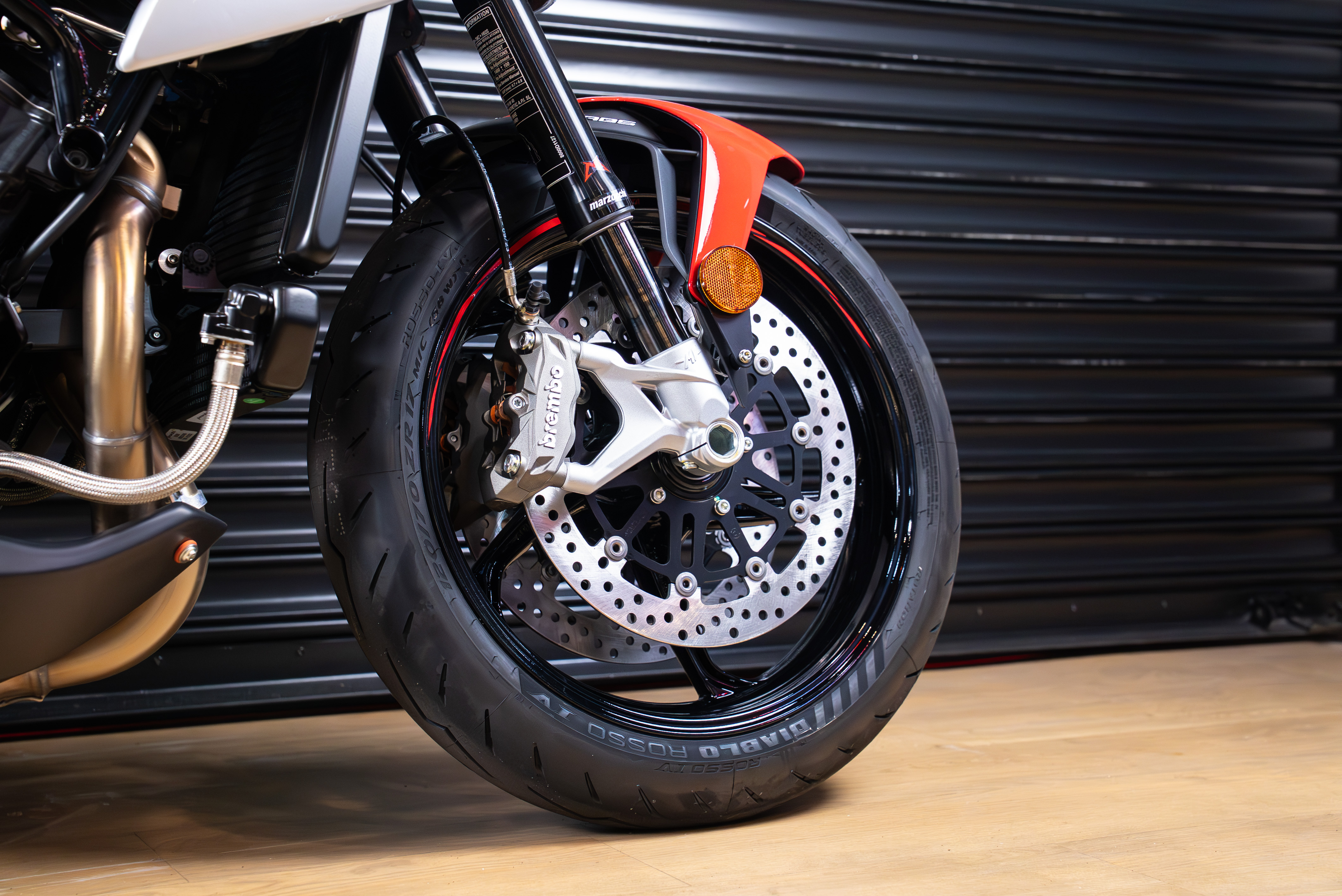 The inline three-cylinder engine, Euro 5+, stands out for its efficiency and performance. With 140 hp and 87 Nm of torque, it guarantees an entertaining ride. Engine timing is optimised to ensure minimal friction, while the gearbox is removable, just like in the racing world. The racing-inspired counter-rotating crankshaft is designed to reduce inertia during changes in direction. Additionally, it now features a new 9-disc slipper clutch with torque assist, offering a 50% lighter clutch lever compared to previous versions.