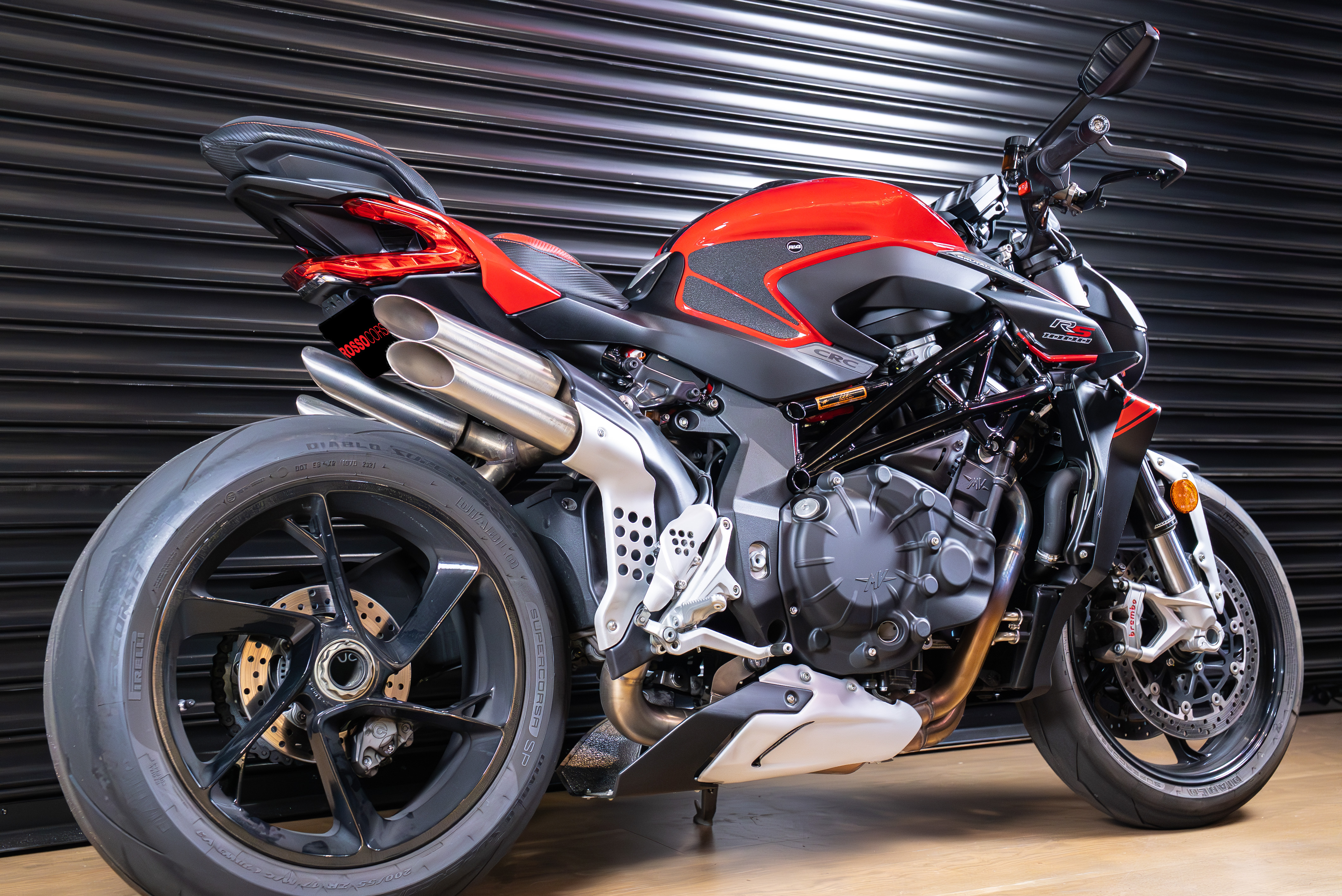The 2022 MV Agusta Brutale 1000 RS is a high-performance naked superbike that combines Italian design with cutting-edge engineering. Powered by a 998cc inline-four engine producing around 208 horsepower, it delivers blistering speed and aggressive torque.