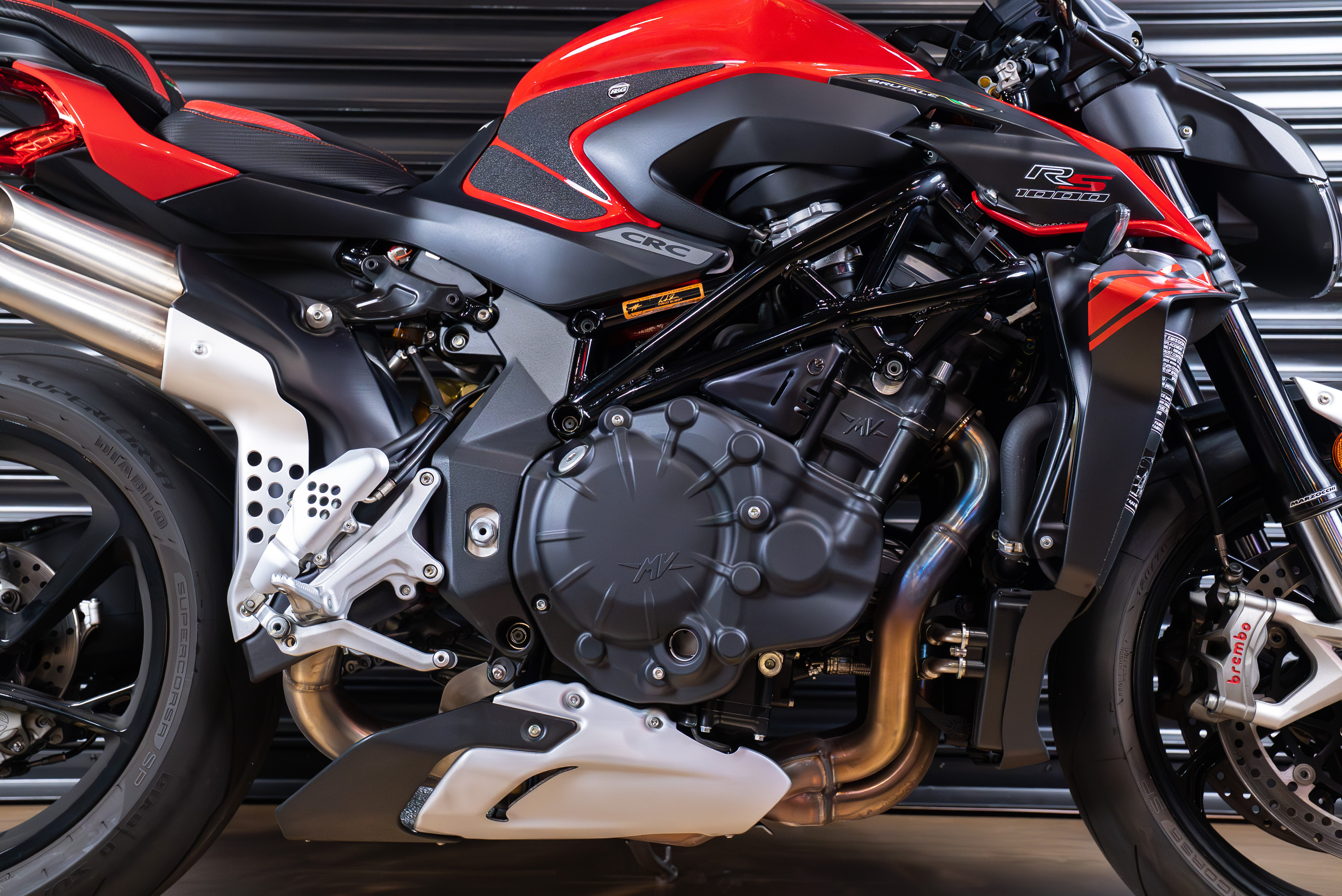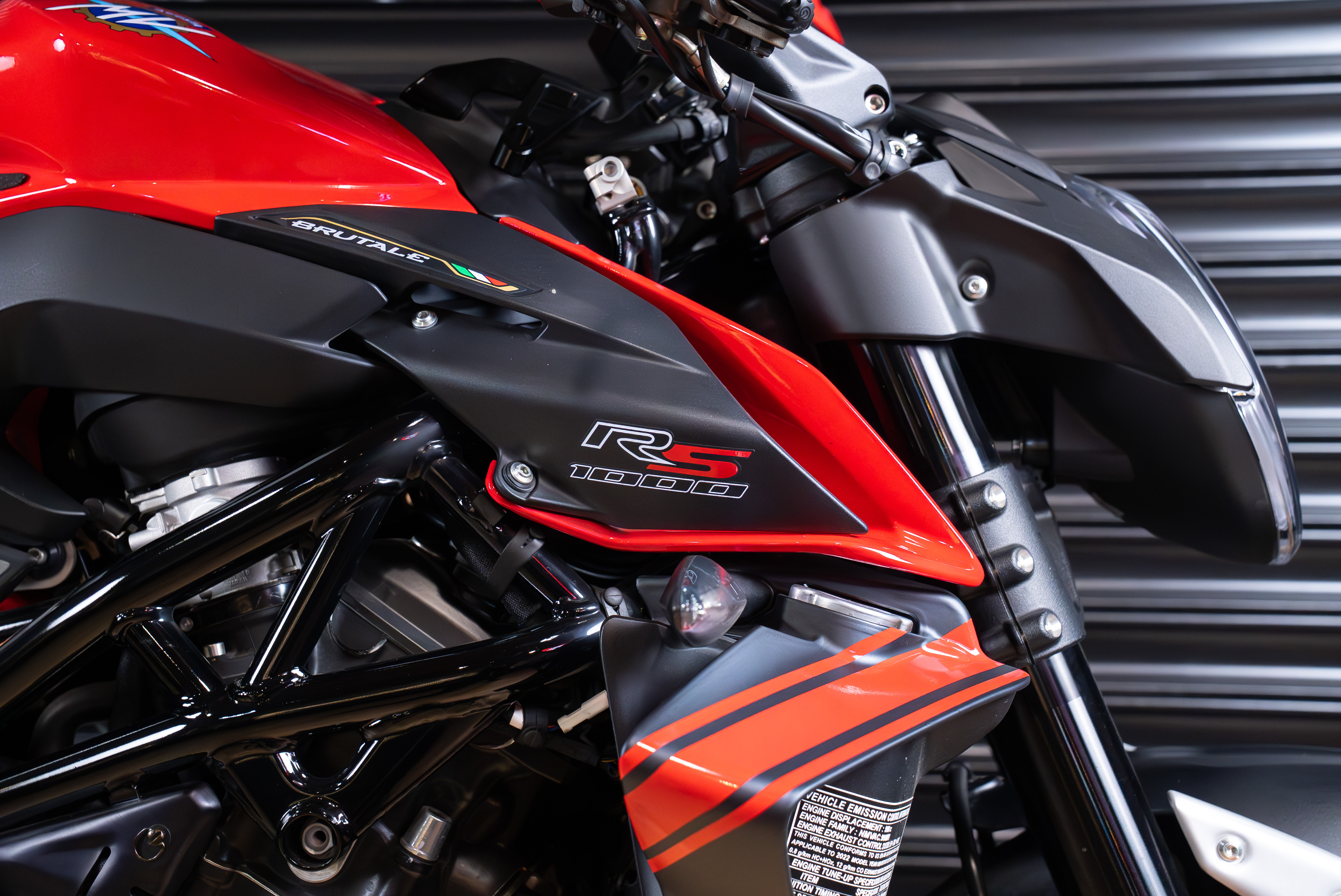 The RS variant offers a more comfortable, road-focused riding experience than the RR model, thanks to revised ergonomics, a slightly relaxed suspension setup, and a more approachable riding position. Advanced electronics include a full ride-by-wire system, cornering ABS, traction control, and a six-axis IMU. Sleek, sharp styling and premium components make the Brutale 1000 RS a standout in the hyper-naked class.